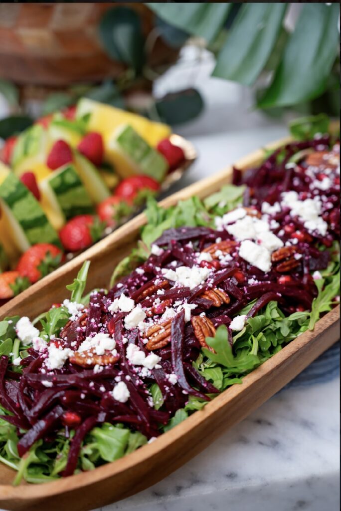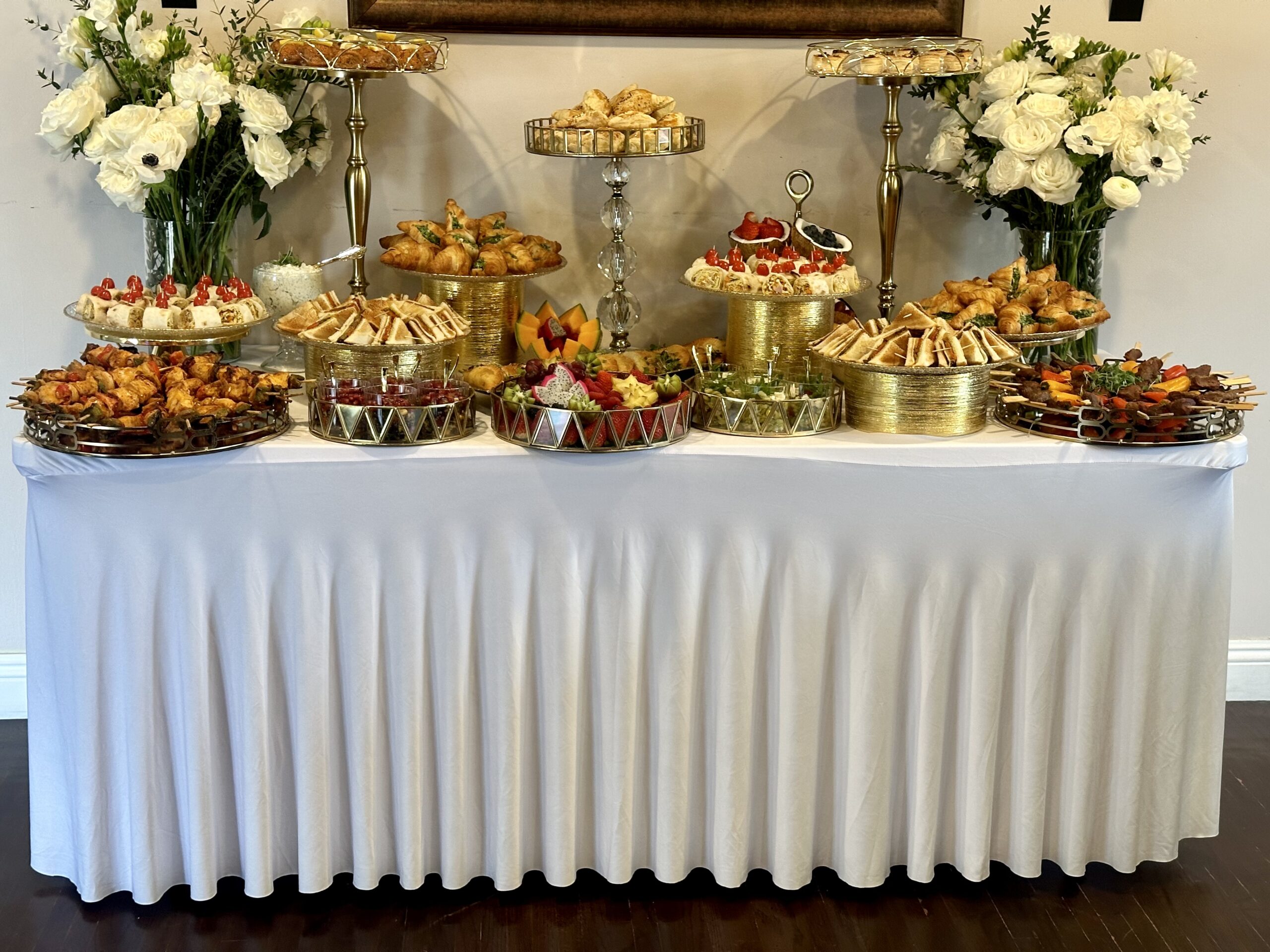 Your guests will enjoy a beautifully arranged buffet-style setup featuring fresh, delicious food that’s sure to impress.